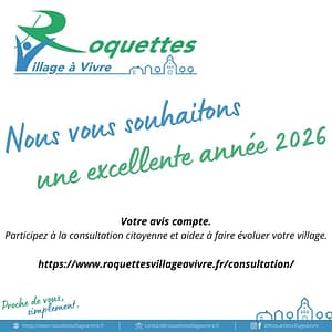 L’équipe Roquettes, Village à Vivre vous adresse ses vœux les plus sincères. Que 2026 vous apporte santé, sérénité et de beaux moments partagés, pour vous et ceux qui vous sont chers.